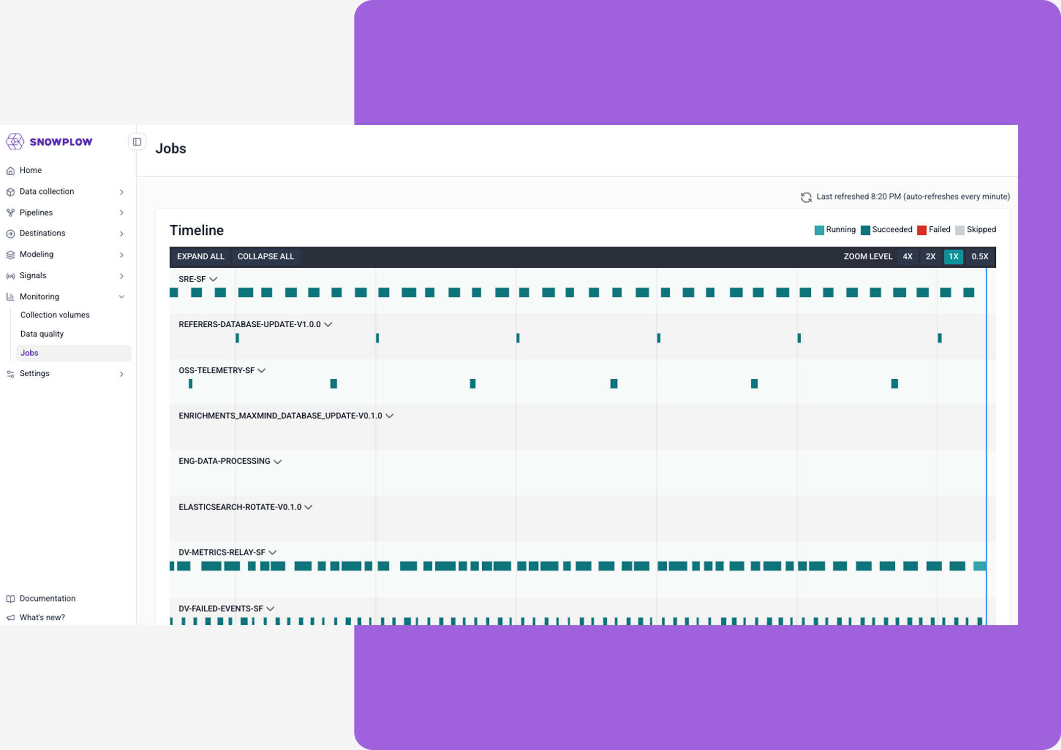 Reduce time from data collection to actionable insights and real-time activation. Transform days of manual SQL work into minutes with autogenerated data models created directly in Console. Leverage Snowtype code generation to rapidly implement tracking with quick detection and correction of failed events.